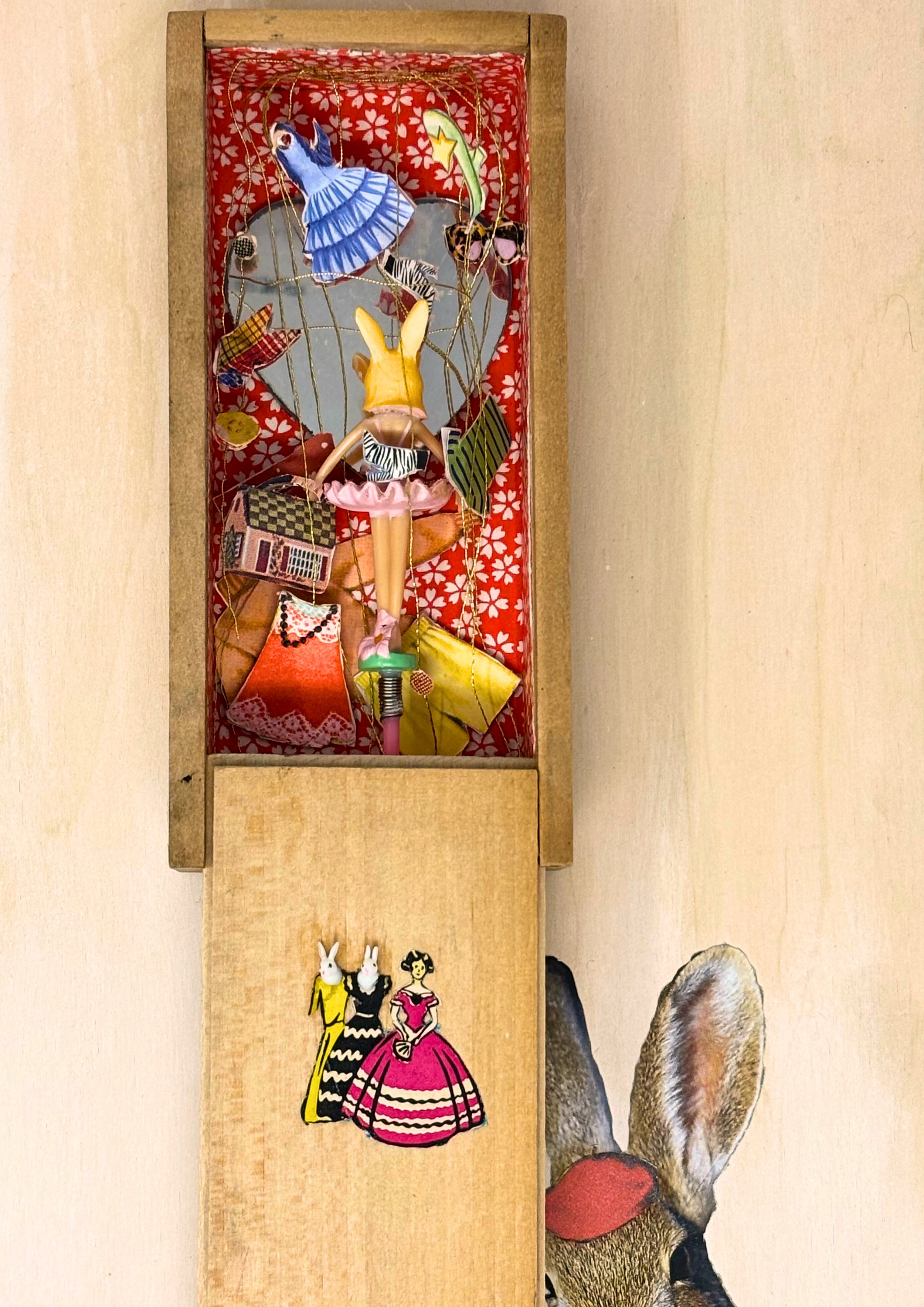 Changing Room - Mixed Media on Wood Panel, 20" x 20" x 4" - 2025 (detail)