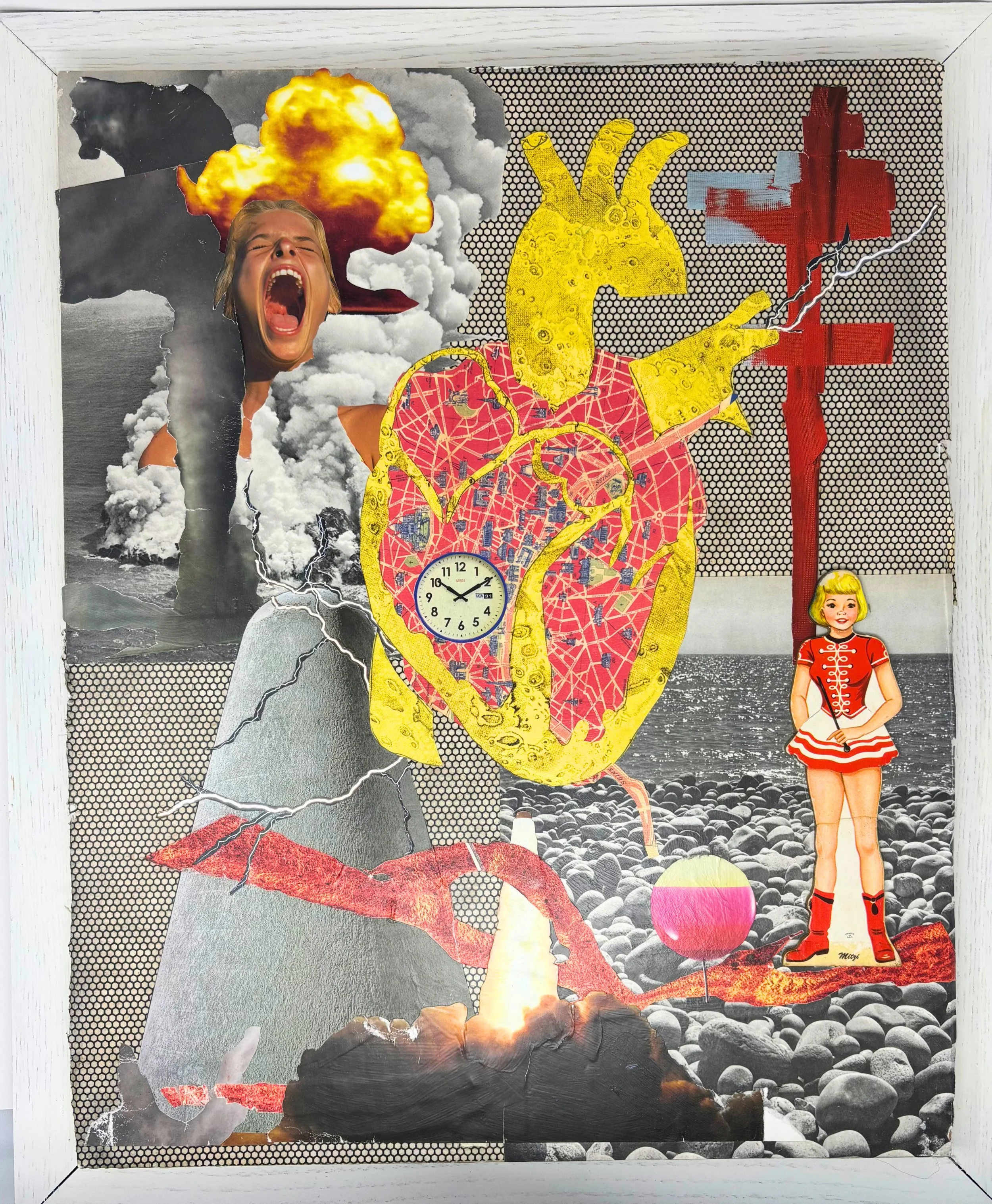 Invisible String - Collage on Wood Panel, 11" x 14" - 2023