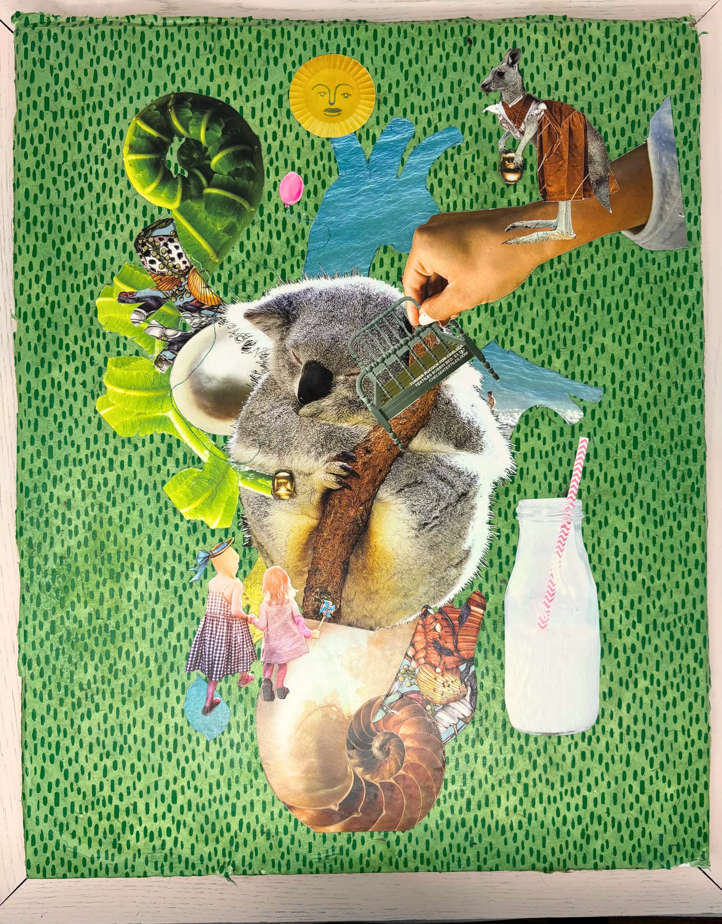 Catch and Release - Collage on Wood Panel, 11" x 14" - 2023 - NFS Giclee Print Avail